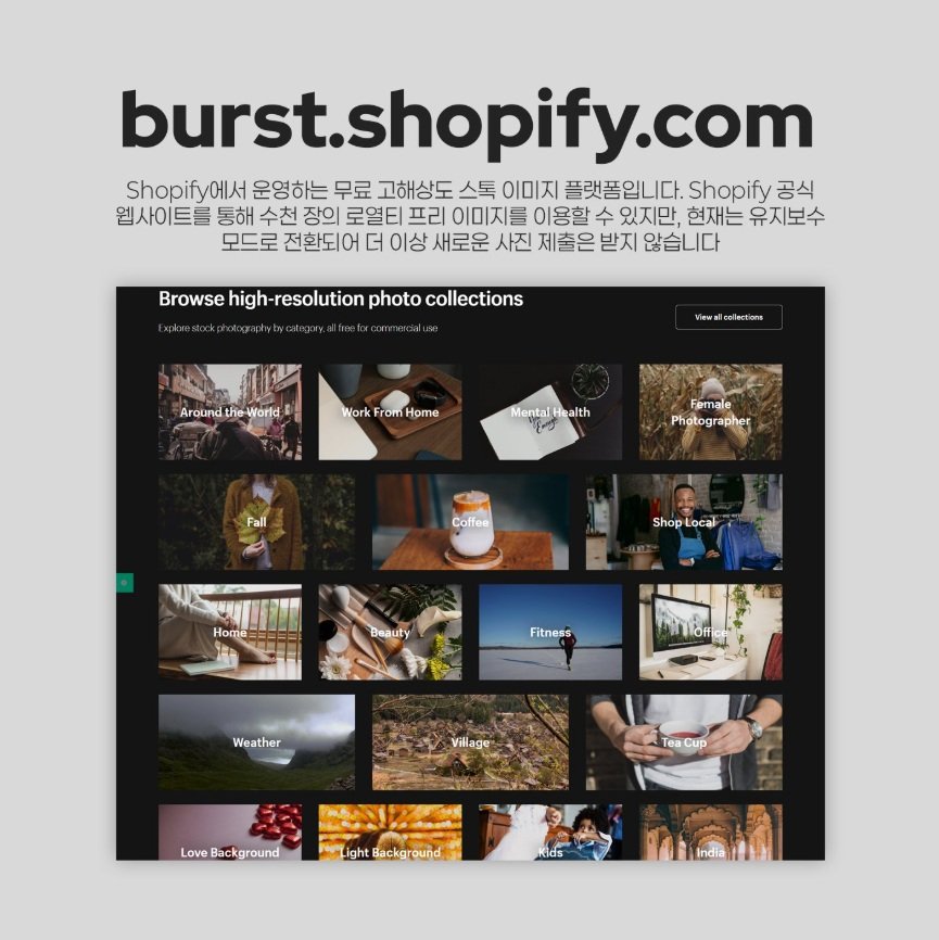 🔗버스트 (burst.shopify.com) 글로벌 커머스 플랫폼 Shopify가 운영하는 무료 스톡 이미지 플랫폼