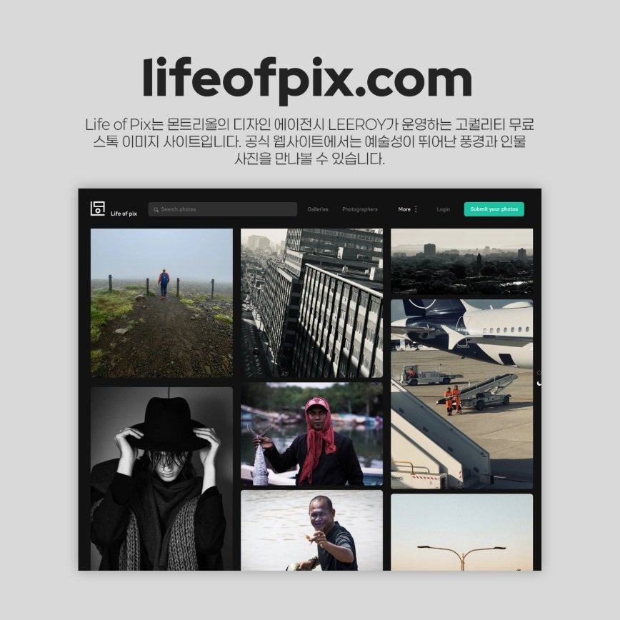 🔗라이프 오프 픽스 (lifeofpix.com) 일반적인 비즈니스용 사진보다는 예술적이고 감각적인 풍경 및 사물 사진이 많은 것이 특징
